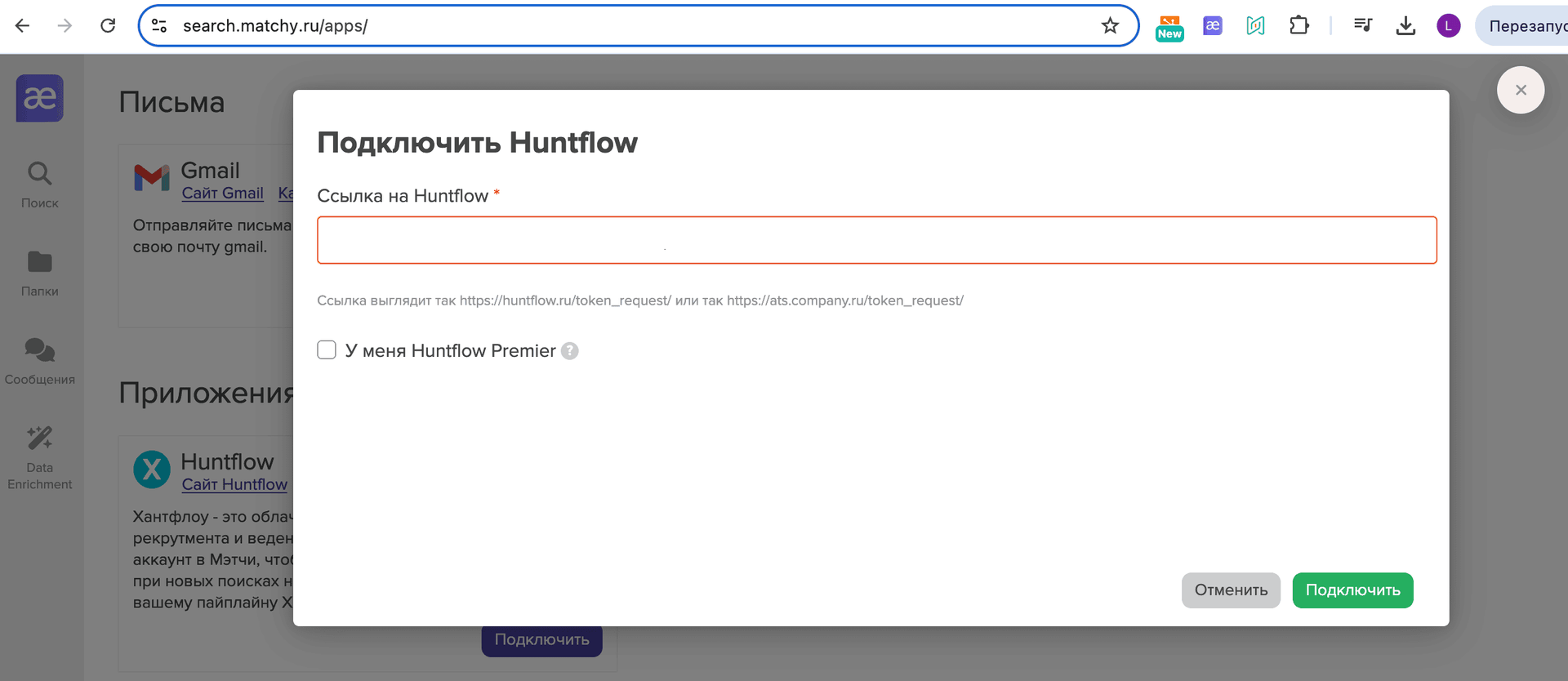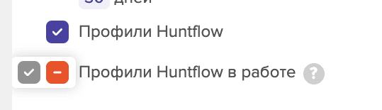 При успешном подключении интеграции, вы сможете увидеть на главной странице Мэтчи 2 появившихся чек-бокса для работы вместе с Хантфлоу.