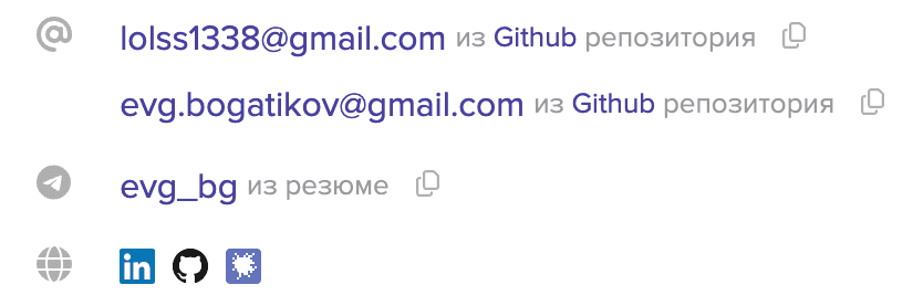 Мэтчи заботится о безопасности данных и отображает только общедоступные контакты, найденные на более чем 50 интернет-ресурсах. Рядом с каждым контактом указана ссылка на источник информации: