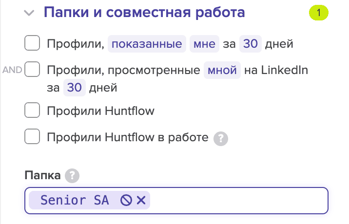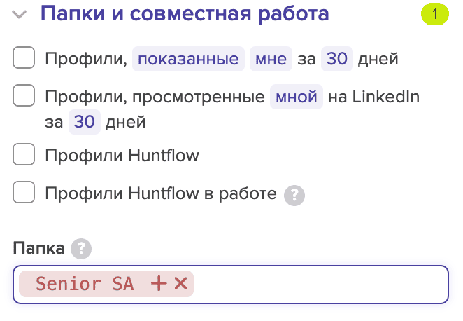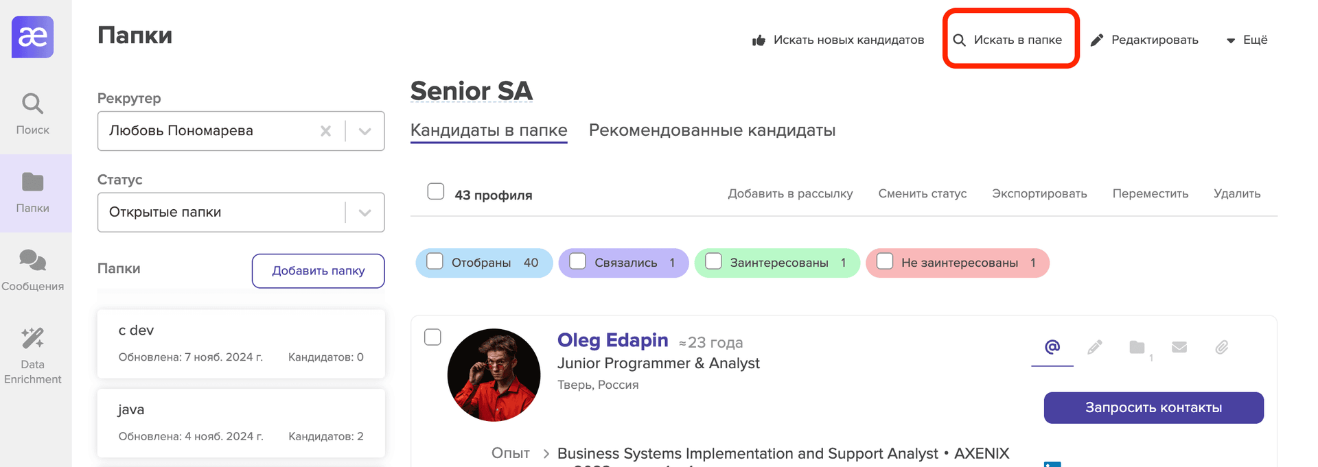 Если вы хотите найти определенный профиль внутри папки, нажмите на “Искать в папке” в верхнем углу экрана и добавьте необходимые поисковые параметры в открывшемся поисковом запросе.
