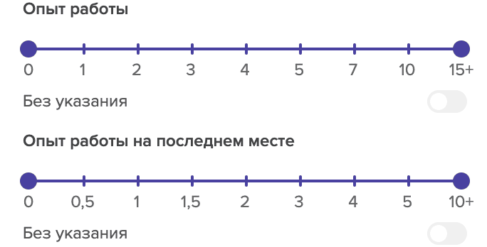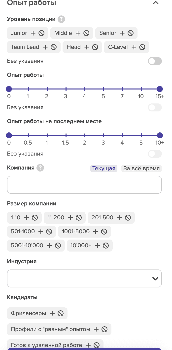 Далее в своём поиске вы можете настроить фильтры по Опыту работы для**** более релевантного пула кандидатов.