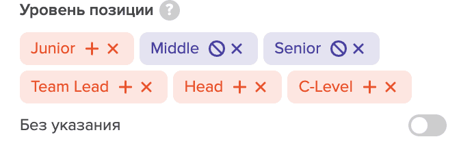 Здесь Вы можете настроить Уровень позиции , чтобы включать или исключать кандидатов в зависимости от их опыта работы, вместо того чтобы вводить различные варианты в поле должности.