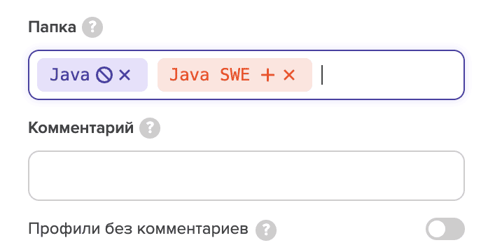 Вы можете включить или исключить определённые папки , которые вы или ваша команда создали ранее. И выполнить поиск по кандидатам с определённым комментарием в их профиле, оставленным вами или вашей командой.