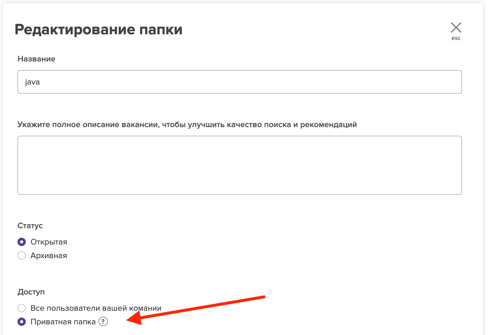 Обратите внимание, что приватные папки не становятся совсем невидимыми. Вот как выглядит приватная папка в профиле кандидата: